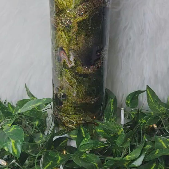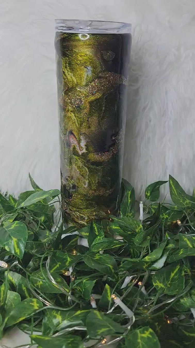 30 oz. Skinny Tumbler with handle and handcrafted with love. Comes with lid and straw accessories.