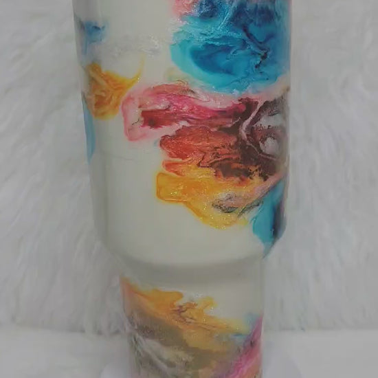 40 oz tumbler - Cup lip is iridescent multi color. All tumblers are handcrafted with love. Comes with lid and straw accessories.