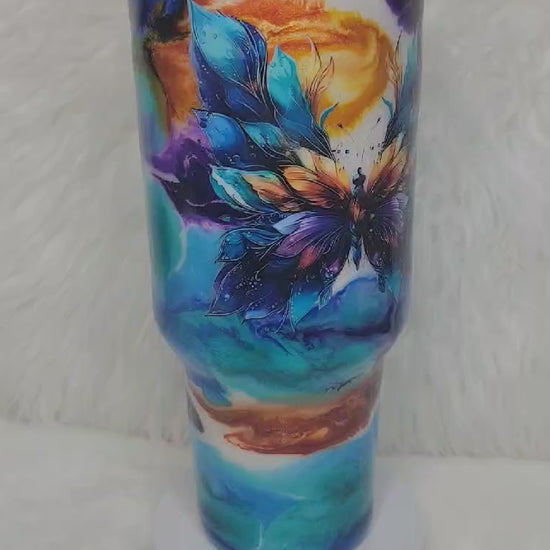 40 oz tumbler - Cup lip is iridescent multi color. All tumblers are handcrafted with love. Comes with lid and straw accessories.