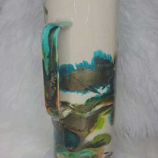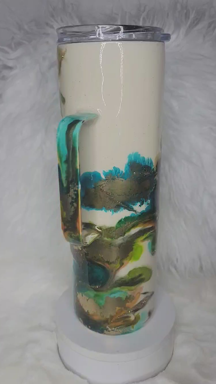 30 oz. Skinny Tumbler with handle and handcrafted with love. Comes with lid and straw accessories.