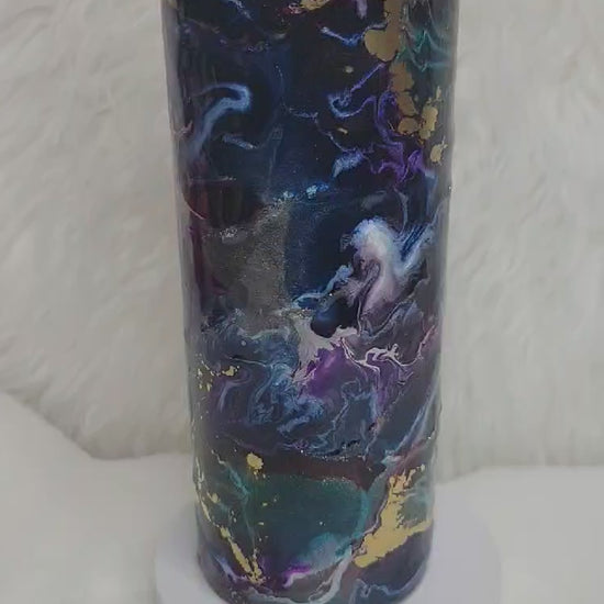 25 oz. Skinny Tumbler handcrafted with love. Comes with lid and metal straw accessories.